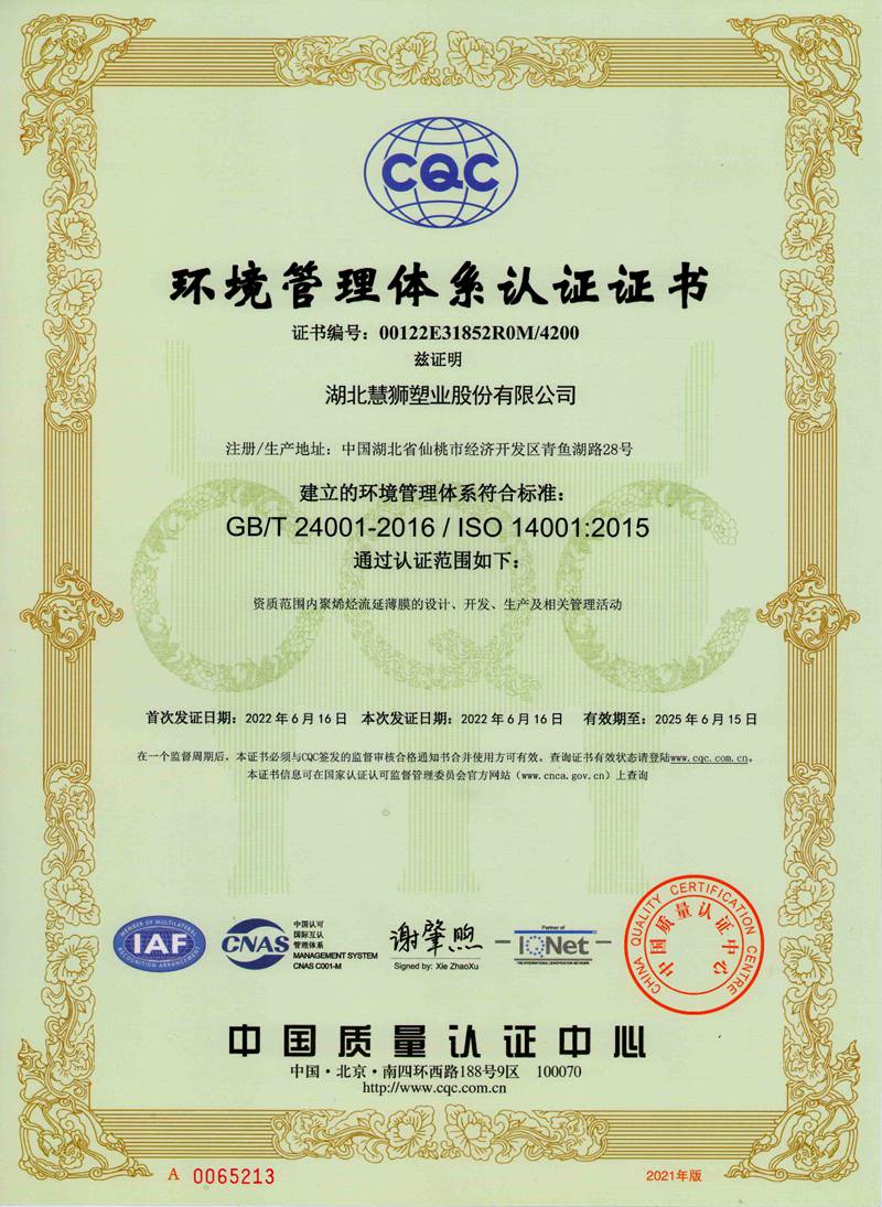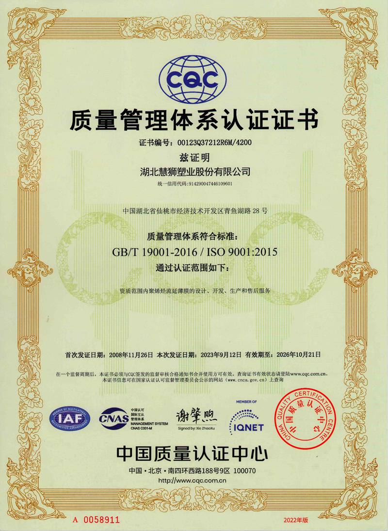 慧獅湖北慧獅塑業股份有限公司是一家專業從事研發、生產、銷售高性能聚烯烴流延薄膜的高新技術企業。